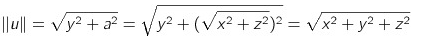 그러면 ||u|| (빗변) 은 피타고라스의 정리를 통해 y제곱과 a제곱에 루트를 씌운 값이 된다.