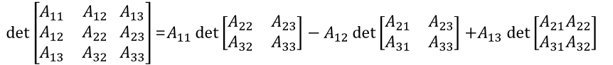 3x3행렬의 소행렬 정의를 이용하면 3x3 행렬의 행렬식의 정의는 아래와 같다.