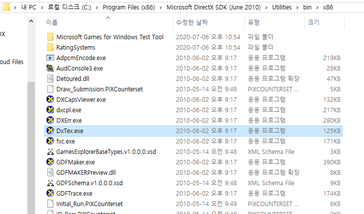 그 안에 Utilities\bin\x86(혹은 x64)를 열어보면 DxTex.exe 파일이 있다.