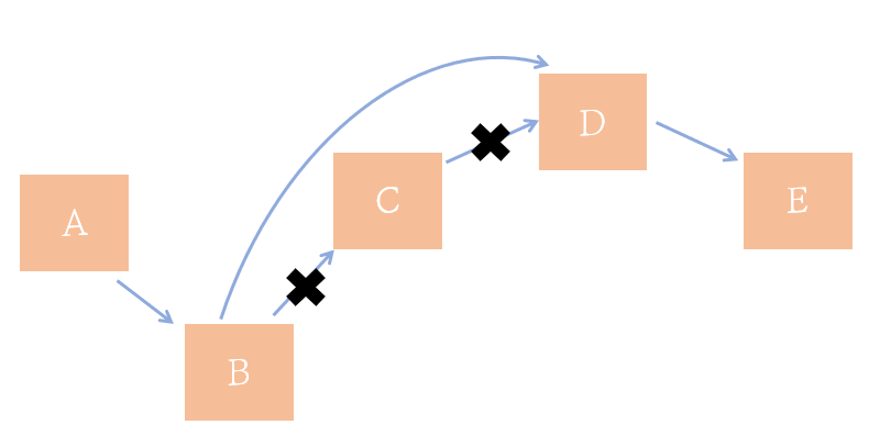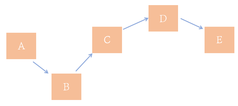위와 같이 노드들이 연결되어 있다고 할 때 (A->B->C->D->E) 데이터를 삽입하고자 한다.