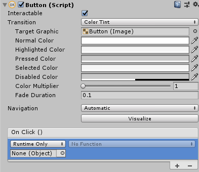 그 이유는 위 사진을 보면 알 수 있는데 가장 기본적인 사용방법으로는 마우스가 버튼 위에 있는지 아닌지에 따라서 Color도 쉽게 바꿀 수 있고 Color Tint를 Sprite Swap으로 바꾸면 버튼의 이미지를 바꿀 수도 있고 Animation으로 설정하면 Animation 효과도 넣을 수 있기 때문이다. 참 좋은 기능이다.